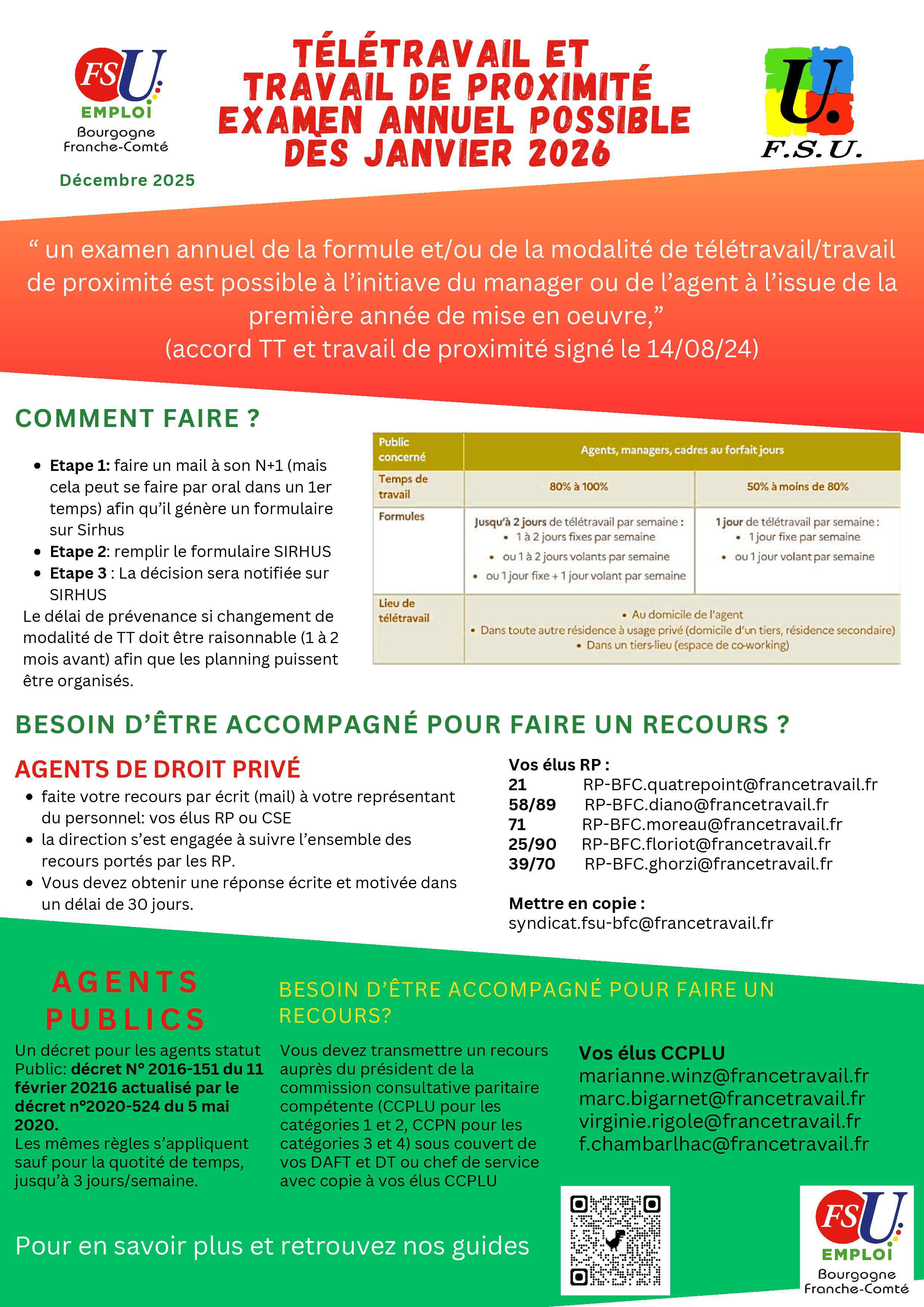 “ un examen annuel de la formule et/ou de la modalité de télétravail/travail de proximité est possible à l’initiave du manager ou de l’agent à l’issue de la première année de mise en oeuvre,”