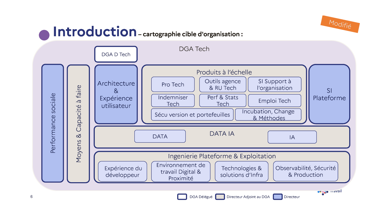 Ce bouleversement montre le nouveau visage que prend France Travail et l’importance de la DGA Tech dans la vie de notre établissement (Direction IA, Direction DATA, Direction Architecture et expérience utilisateurs, Direction observabilité sécurité et production, Direction environnement digital et proximité etc.).  La Direction Générale continue de présenter aux représentant.es du personnel les projets de transformation de l’établissement un par un, de manière anodine et presque bienveillante (effectivement qui pourrait contredire la Direction lorsqu’elle reconnait les dysfonctionnements informatiques vécus régulièrement par les agents ?). Pourtant nous savons que nous sommes bien face à un projet global d’efficience et encore de réduction des coûts.