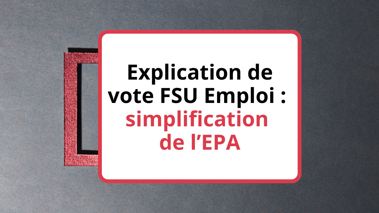 Pour l’ensemble de ces raisons la FSU Emploi se prononce contre la simplification de l’EPA telle que proposée.