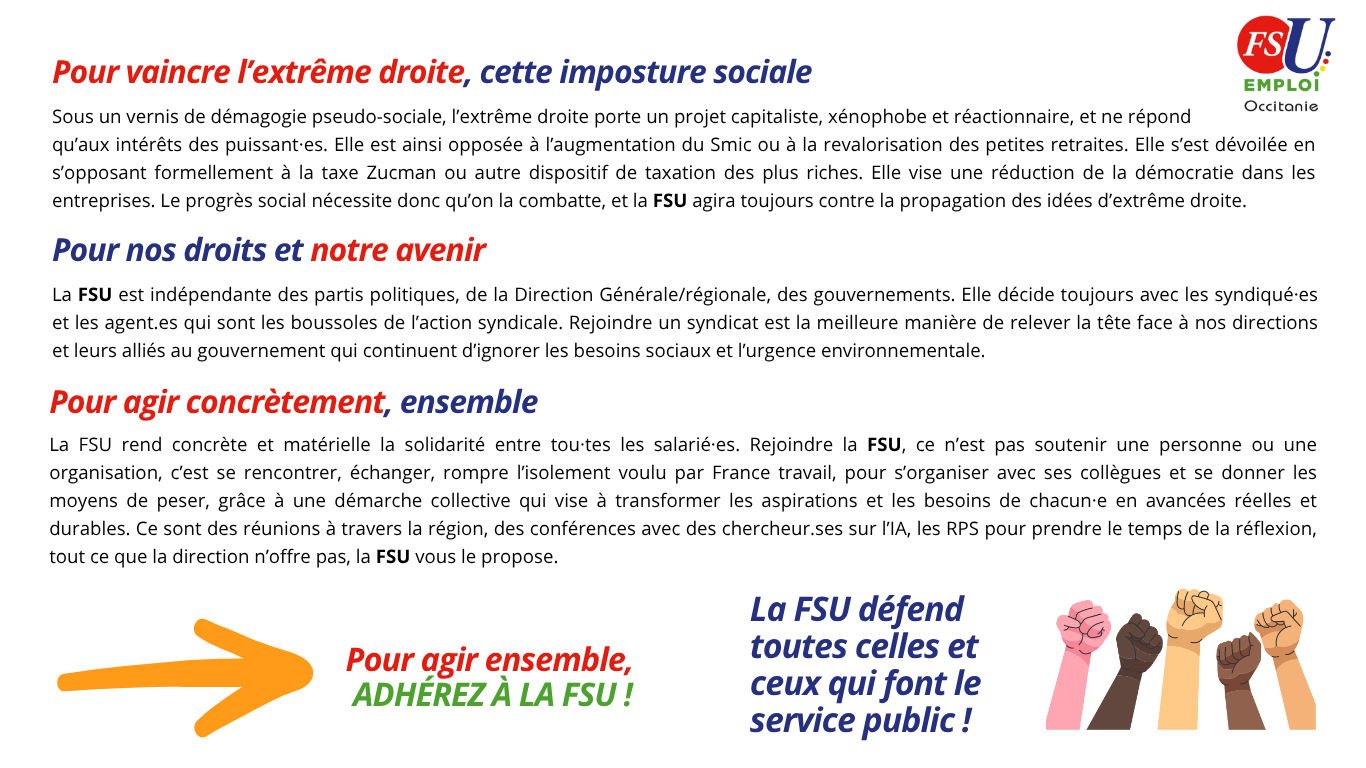 Pourquoi se syndiquer et s’organiser avec la FSU EMPLOI OCCITANIE ?