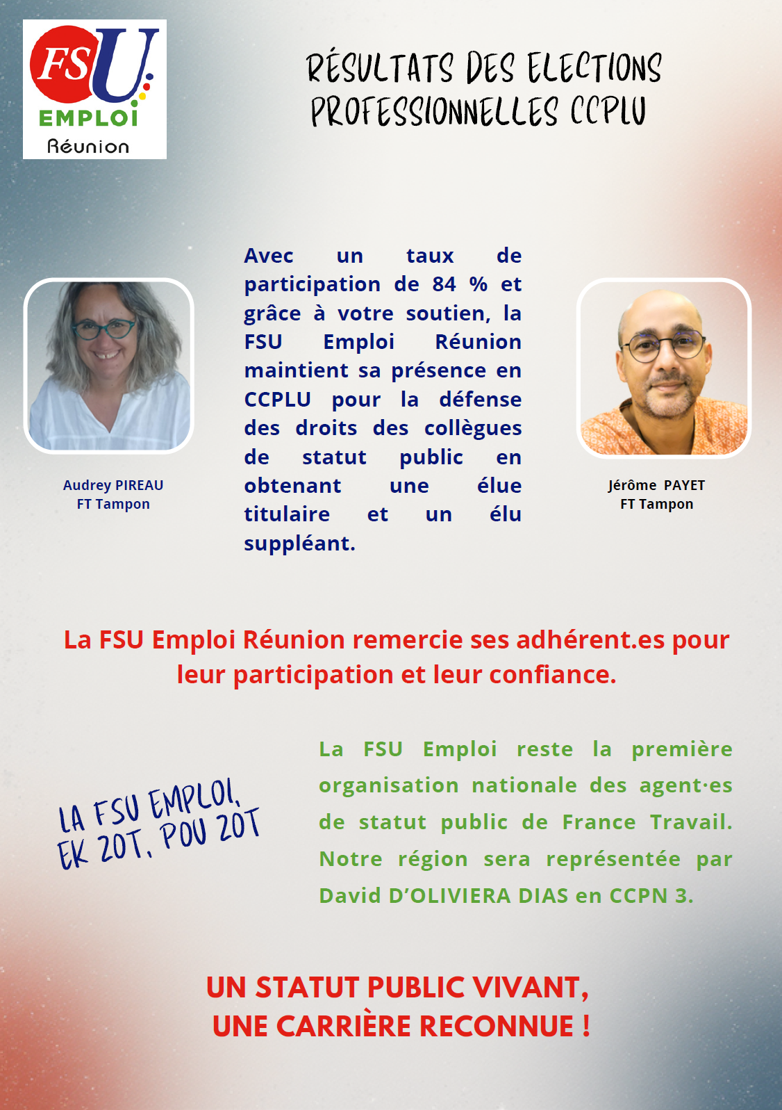 La FSU Emploi Réunion remercie ses adhérent.es et sympathisant.es pour leur participation et leur confiance !