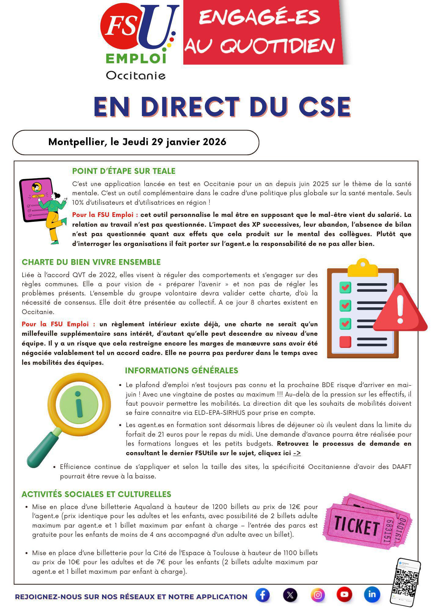 La FSU Emploi Occitanie vous informe : En Direct du CSE - CSE du jeudi 29 janvier 2026