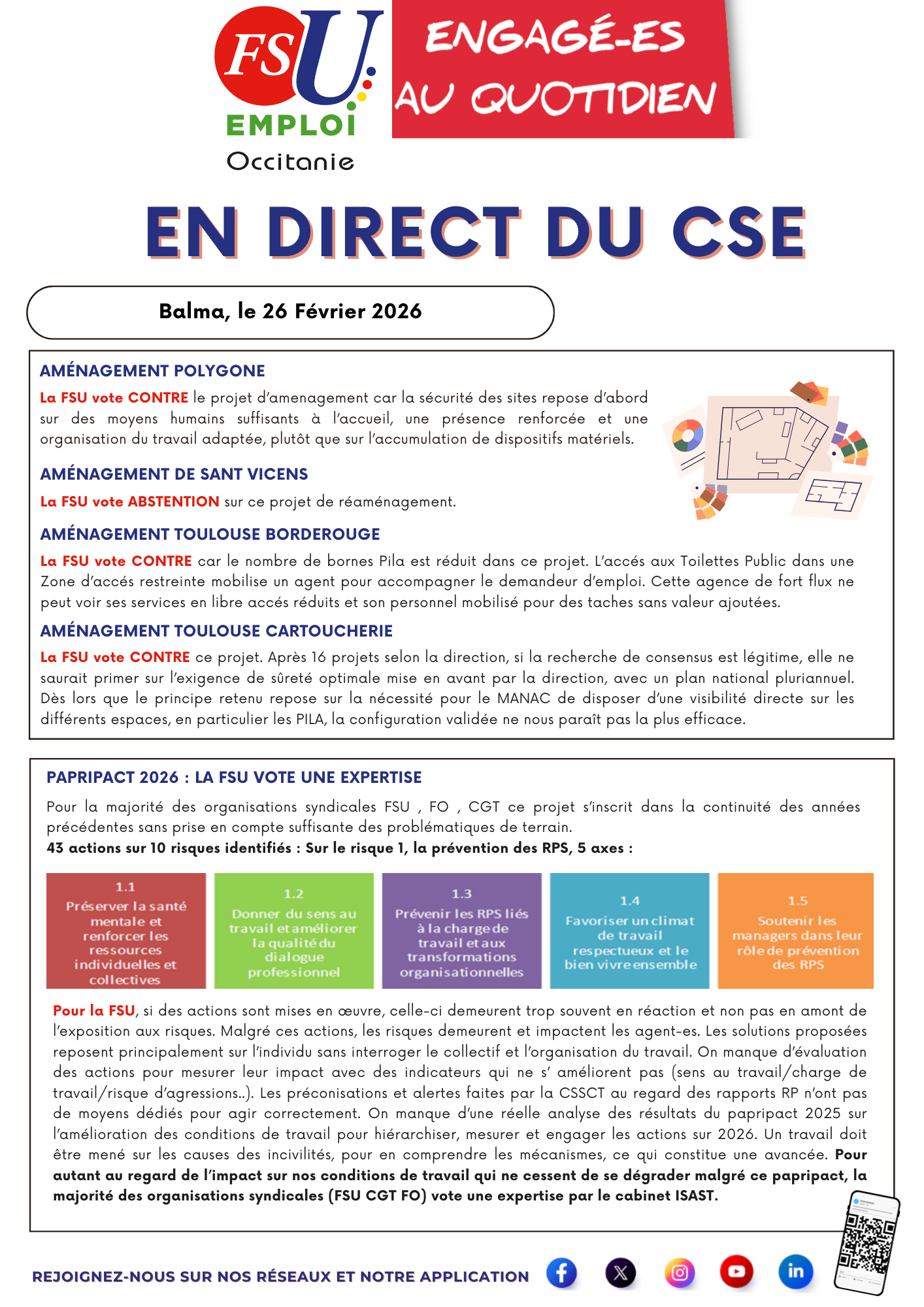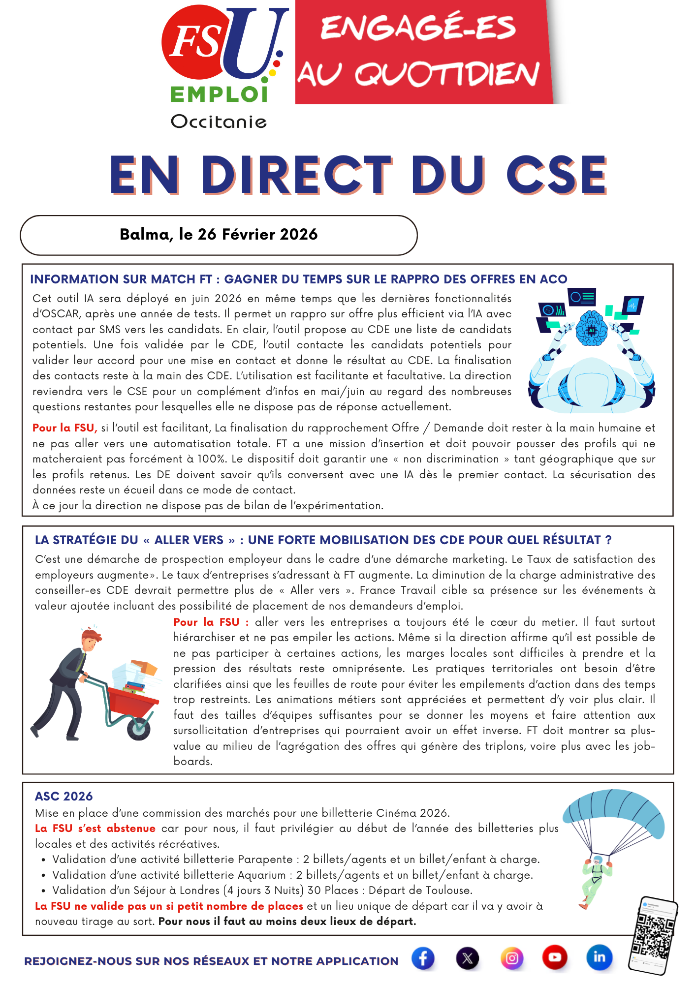 La FSU EMPLOI Occitanie vous informe : En Direct du CSE du 26 Février 2026.