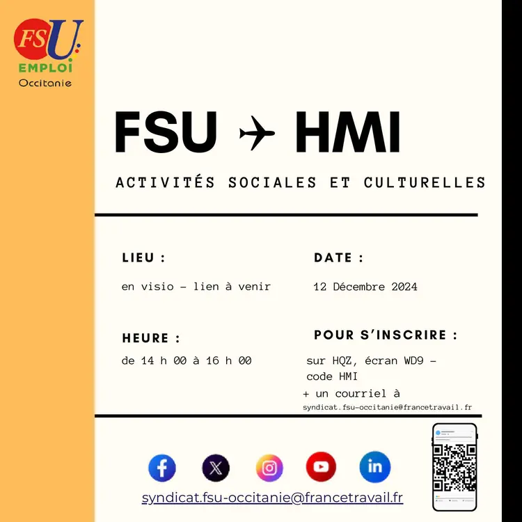 Vous trouverez la dernière communication de la FSU Emploi Occitanie qui fait suite au CSE dédié aux activités sociales et culturelles pour 2026, CSE qui s'est tenu le Vendredi 7 Novembre 2025 à Lezignan.