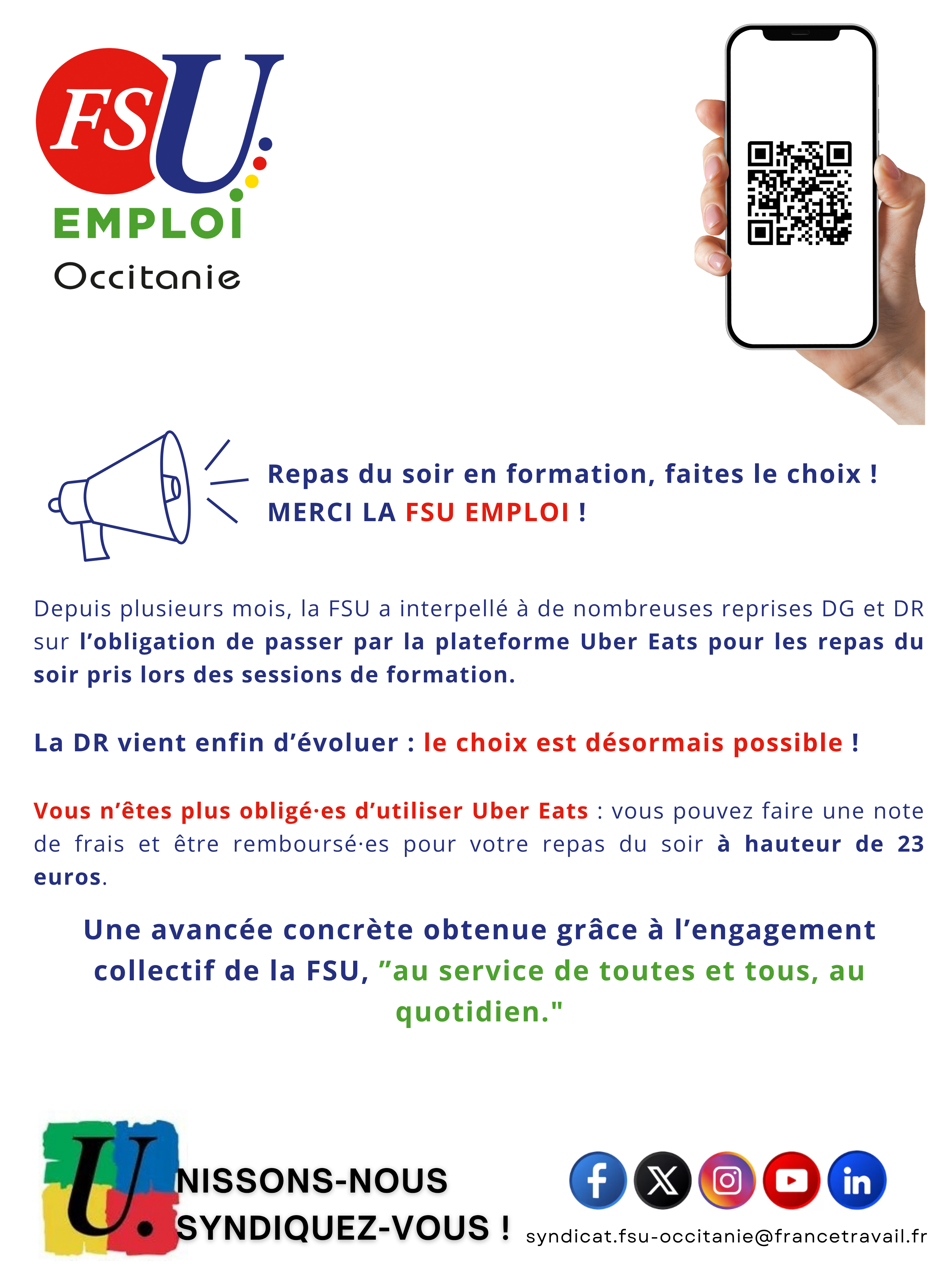 📢 Repas du soir en formation, faites le choix ! MERCI LA FSU EMPLOI 🙏🏼