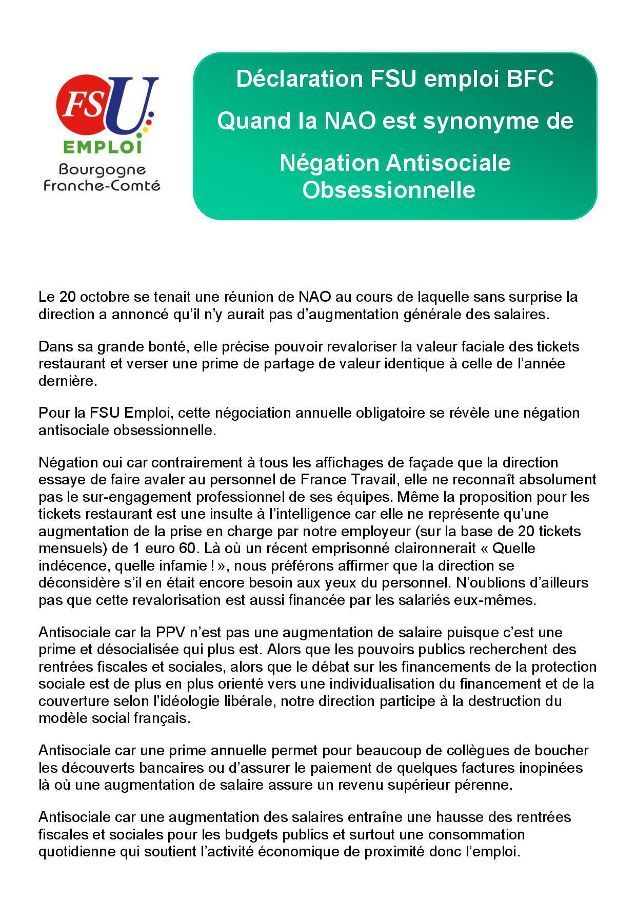 Pour la FSU Emploi, cette négociation annuelle obligatoire se révèle une négation antisociale obsessionnelle.