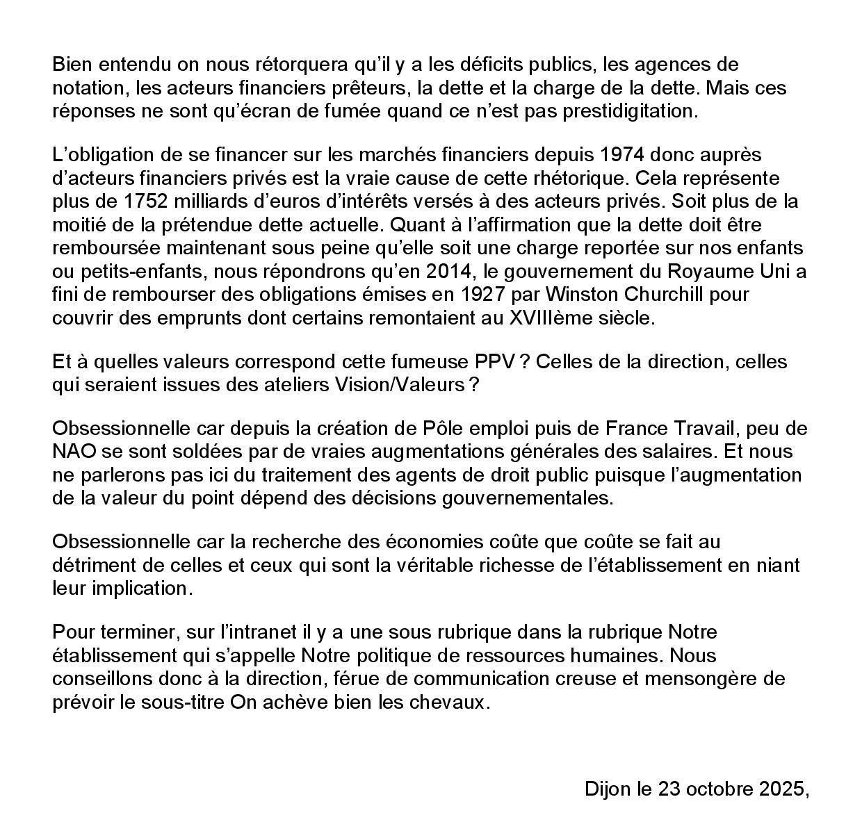 Le 20 octobre se tenait une réunion de NAO au cours de laquelle sans surprise la direction a annoncé qu’il n’y aurait pas d’augmentation générale des salaires.