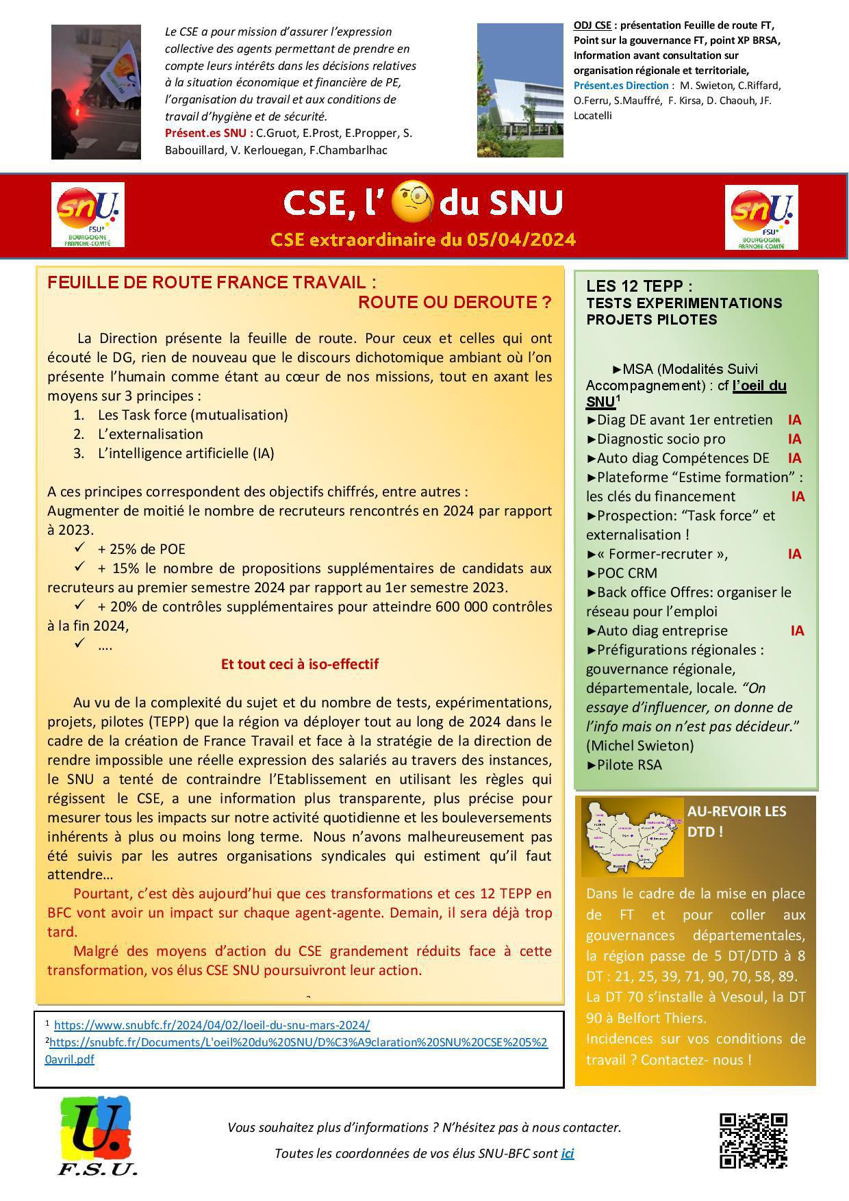 L'oeil de la FSU - CSE extraordinaire - avril 2024