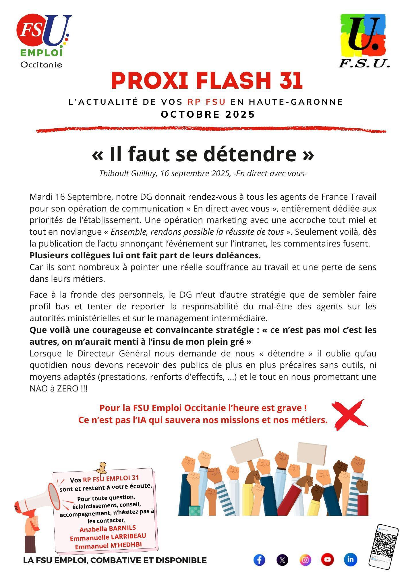 Vous trouverez ci-dessous et en pièce jointe la dernière communication de vos RP FSU Emploi 31.