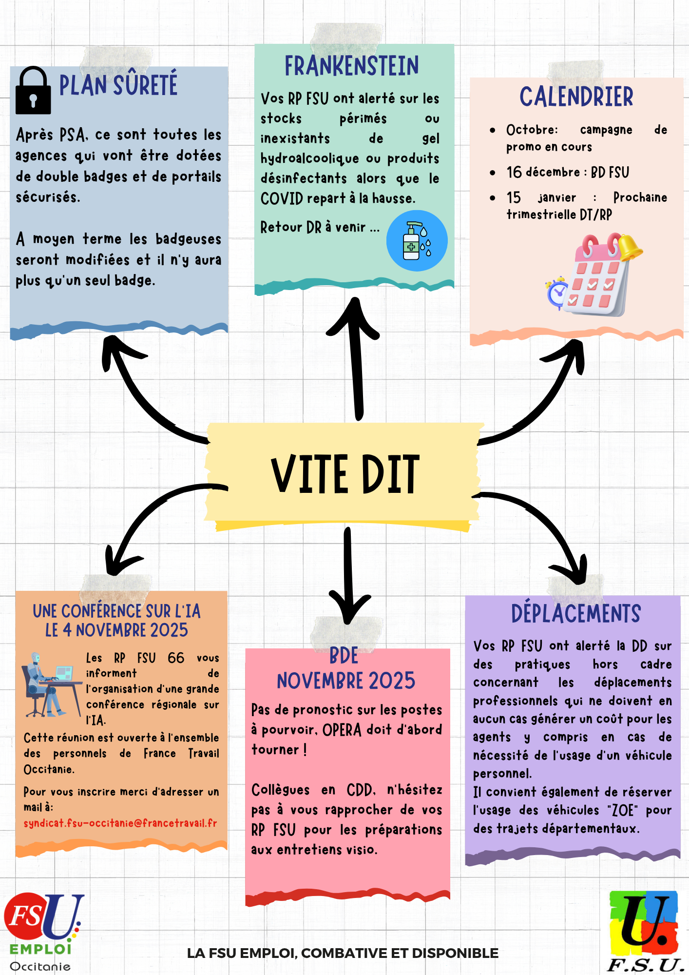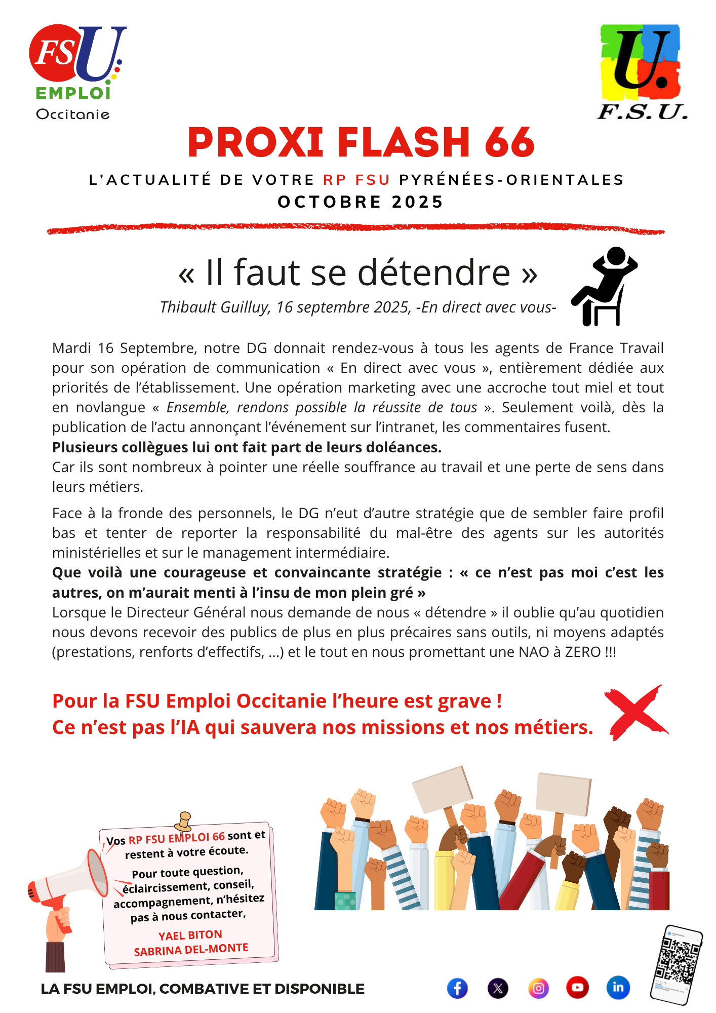 Vous trouverez dans cet article la dernière communication de vos RP FSU EMPLOI 66 d'Octobre 2025