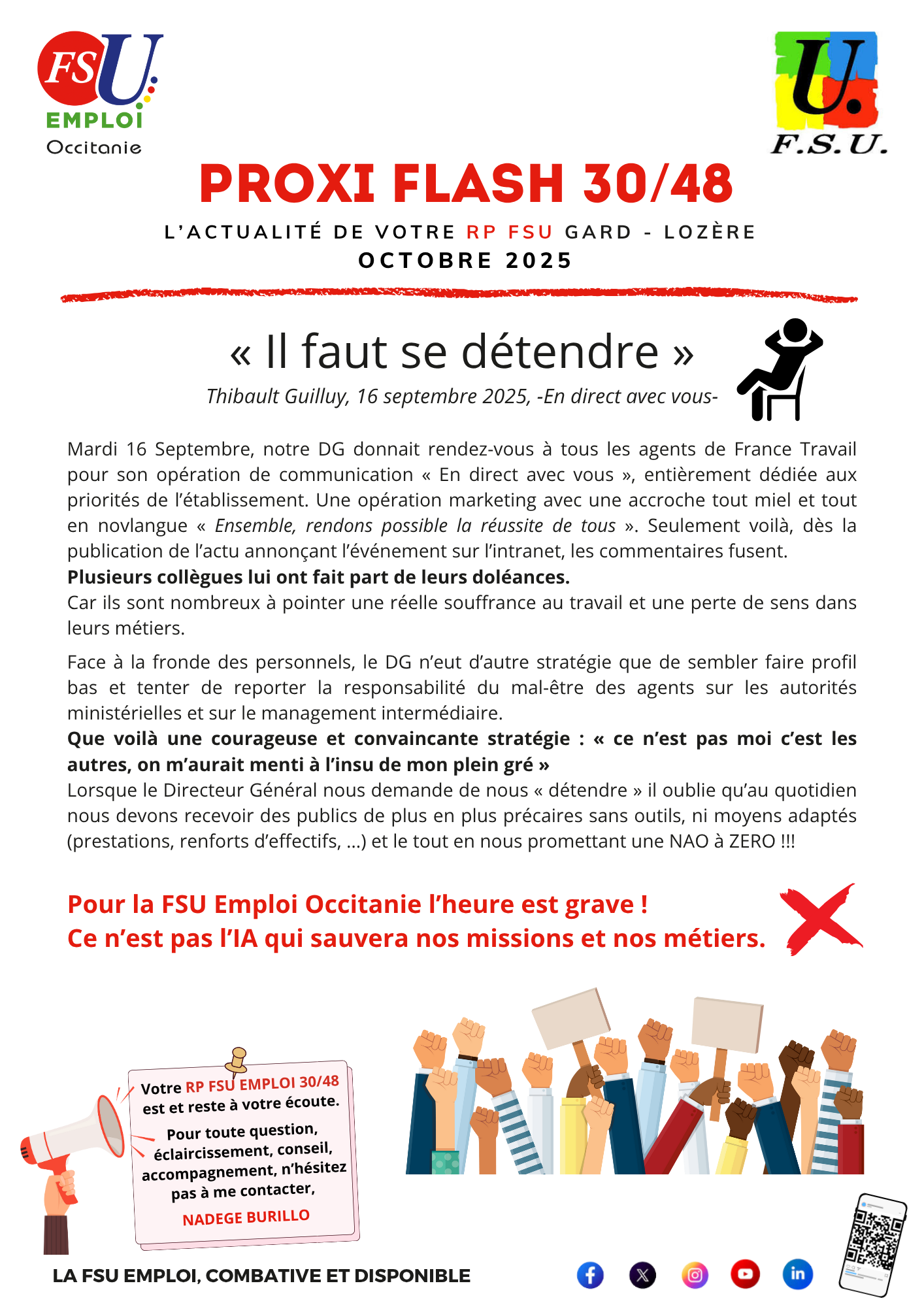 Vous trouverez dans cet article la dernière communication de votre RP FSU EMPLOI 30/48 d'Octobre 2025.