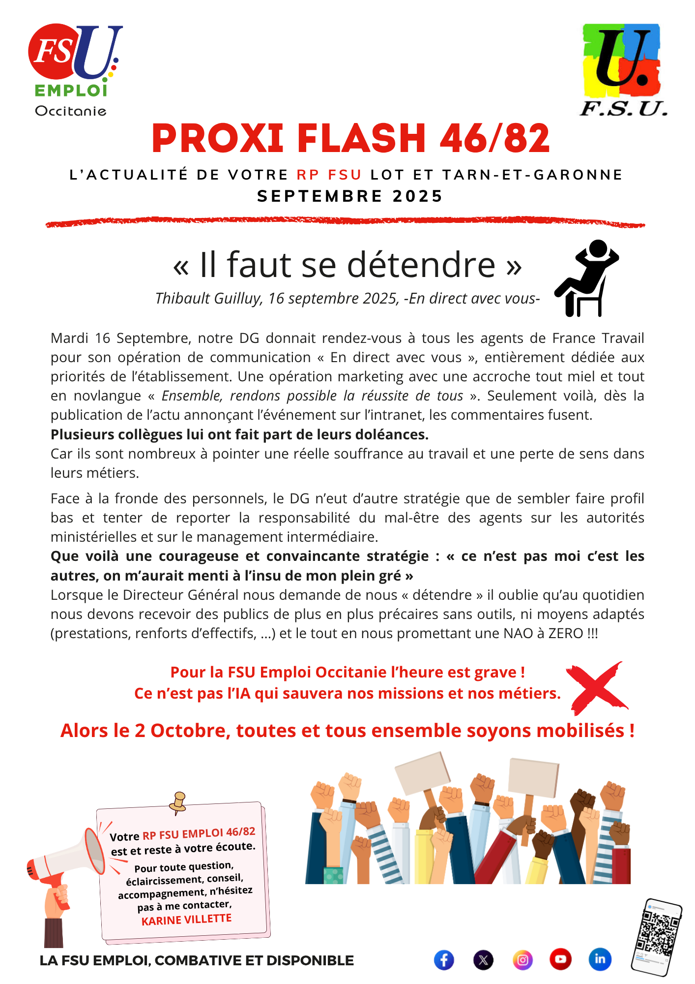 Vous trouverez dans cet article la dernière communication de votre RP FSU EMPLOI 46/82 de Septembre 2025.