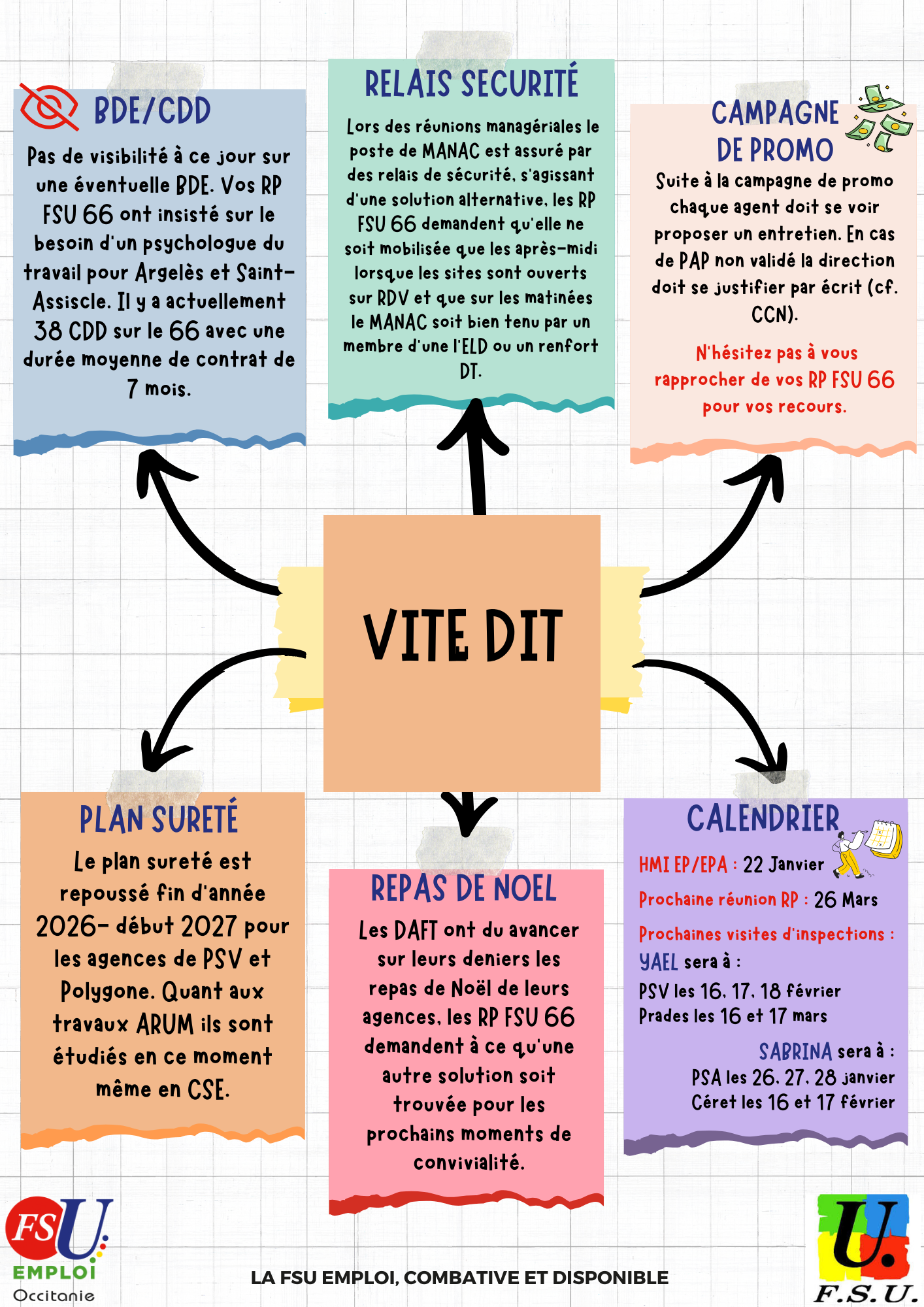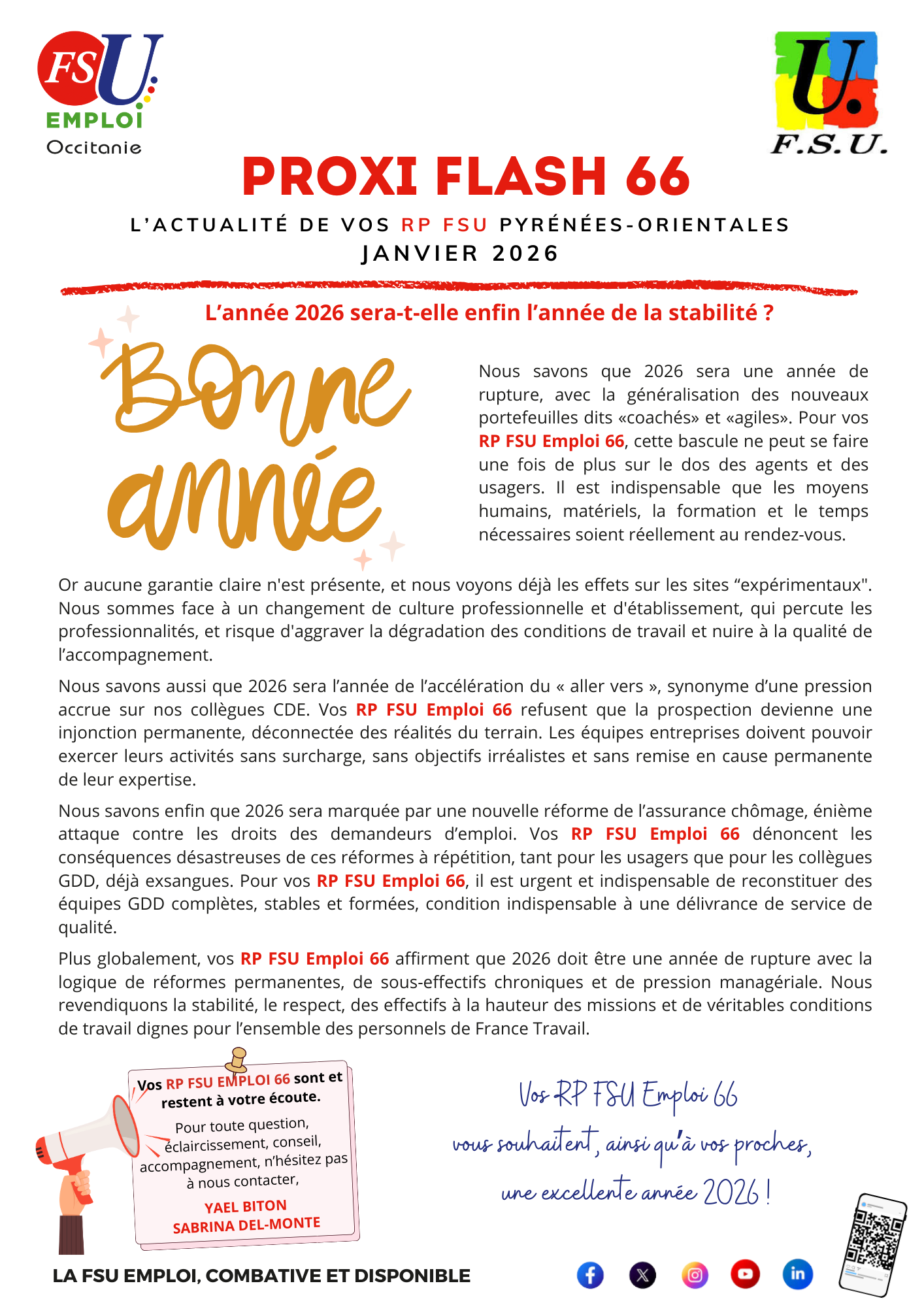 Vous trouverez dans cet article la dernière communication de vos RP FSU EMPLOI 66 de Janvier 2026.