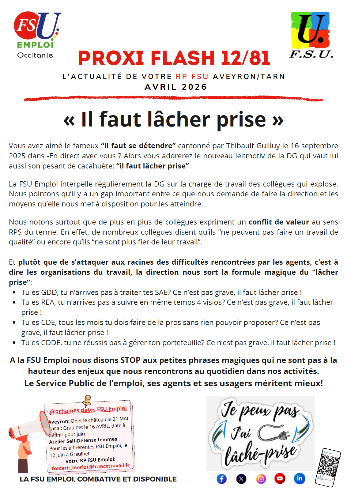 Vous trouverez ci-dessous la dernière communication de votre RP FSU 12/81