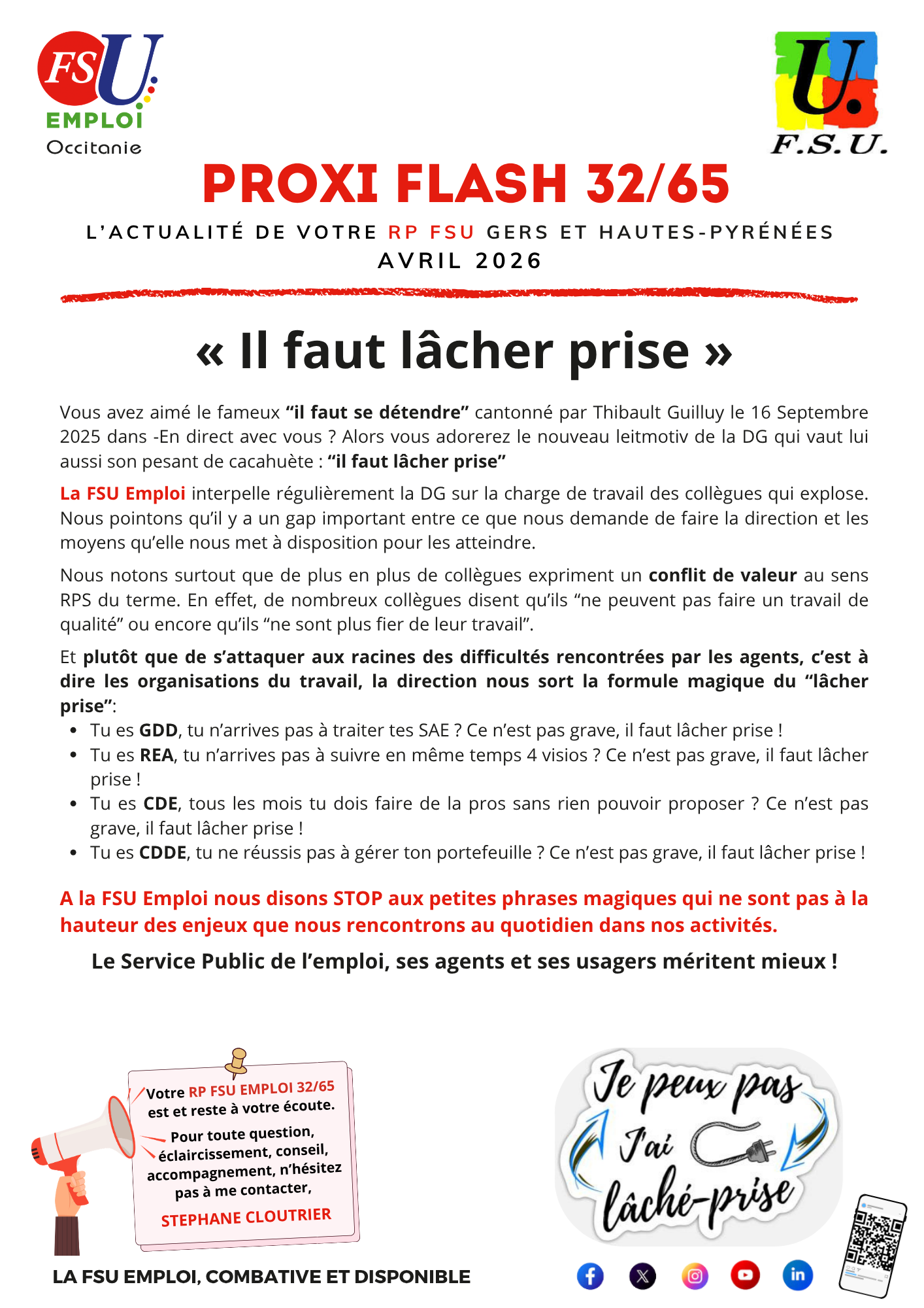 Vous trouverez ci-dessous la dernière communication de votre RP FSU 32/65.